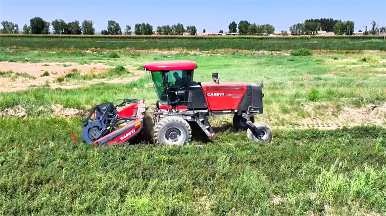 连日来,高台县7000多亩制种苜蓿迎来收成季,田间地头,收割机、打包机与运输车来往作业,奏响了丰盈乐章。